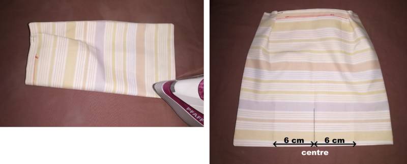 Placer la couture ouverte au milieu et repasser. Repasser aussi la fente dans le prolongement (= 1 cm de chaque côté)
